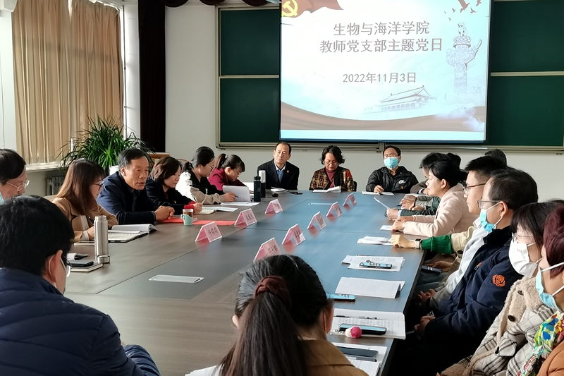 本網訊 11月3日,學校黨委委員、副校長朱猷武以普通黨員身份參加所在黨支部——生物與海洋學院教師黨支部“學習宣傳貫徹黨的二十大精神,以應用型科研服務區域經濟發展”主題黨日活動并作交流發言。