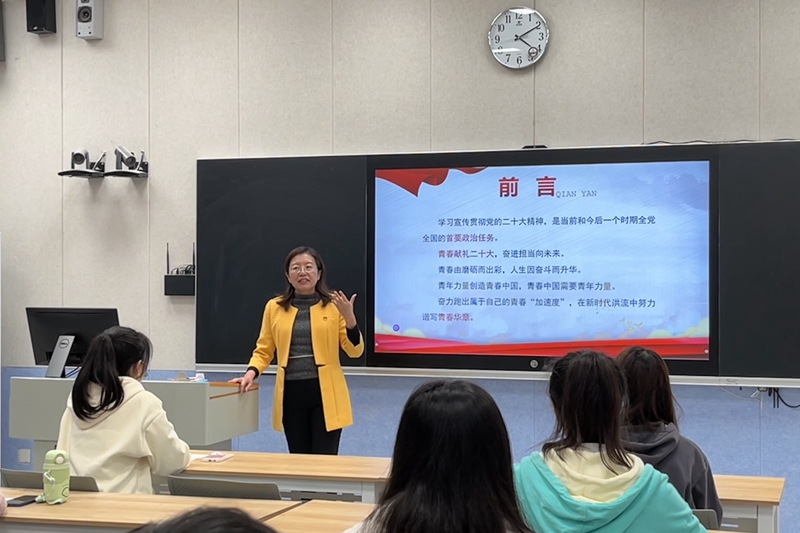 周瑩首先從入黨積極分子培訓的重要意義和入黨條件方面堅定了學員們的初心和信仰,引導學員們系好入黨的第一粒扣子。課堂上,學員們回答問題積極踴躍,周瑩以書本作為禮物送給大家,鼓勵大家牢記共產黨人的奮斗目標,努力學習,取得優異成績。隨后帶領全體入黨積極分子堅持原汁原味學、反復深入學、結合實際學,把黨的二十大精神作為此次政治課堂的核心內容,切實把入黨積極分子的思想和行動統一到黨的二十大精神上來。課堂最后,周瑩帶領大家合誦詩歌《中國,上場》。