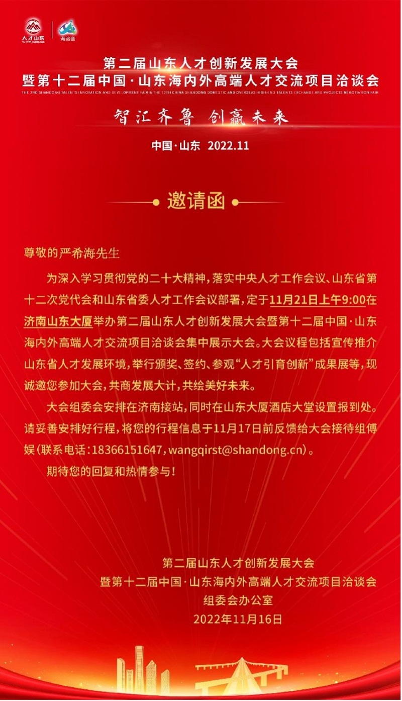 據悉,山東人才創新發展大會創立于2020年,中國·山東海內外高端人才交流項目洽談會創立于2001年,是我省重點打造的招才引智平臺。