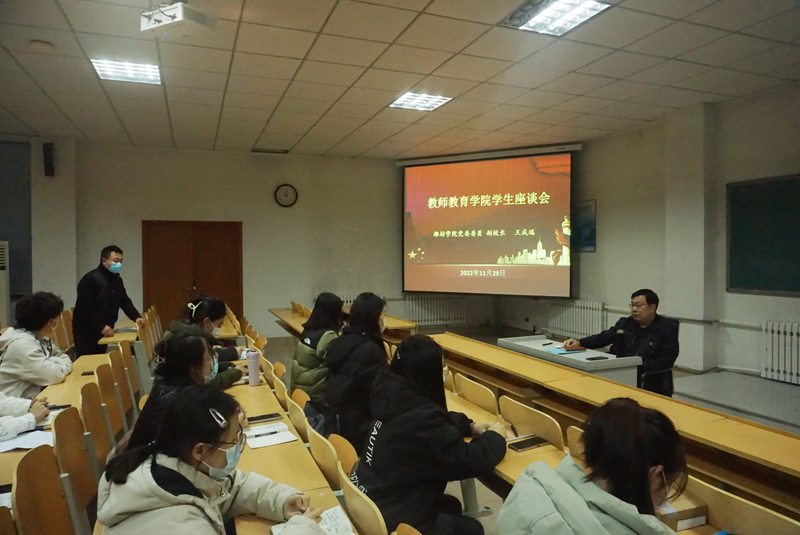 本網訊 為深入了解安順校區相對封閉管理期間學生們的學習、工作、生活情況,11月29日下午,學校黨委委員、副校長王成端在教師教育學院(特教幼教師范學院)召開學生座談會,與同學們進行深入交流。