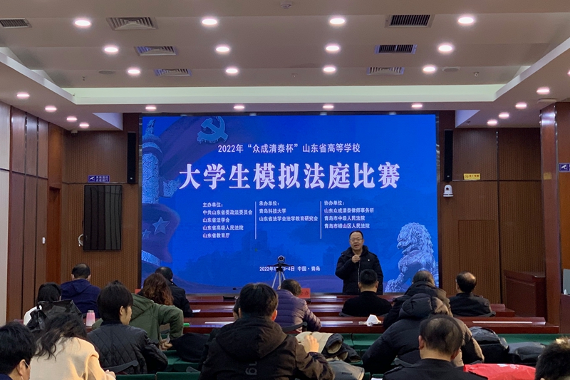 山東高等學校大學生模擬法庭比賽由中共山東省委政法委員會、山東省法學會、山東省高級人民法院和山東省教育廳主辦,旨在加強我省高等學校之間的交流與學習,提升高等學校法科學生的理論思維能力與實踐能力,推動法學專業教育教學改革、培養高素質應用型法律人才。本次比賽由青島科技大學和山東省法學會法學教育研究會承辦,山東眾成清泰律師事務所、青島市中級人民法院和青島市嶗山區人民法院協辦。山東大學(威海)、中國石油大學、煙臺大學等省內29所本科院校組隊參加了本次比賽。