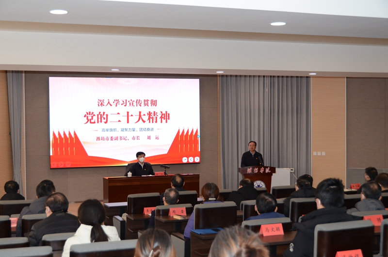 劉運向學校師生介紹了全市經濟社會發展情況。他說,濰坊文化底蘊深厚、交通區位優越、先進制造業基礎雄厚、農業領先全國、教育全國有名。當前,全市上下正在以黨的二十大精神為指引,對標對表黨的二十大新思想新論斷、新部署新要求,對標對表習近平總書記對山東工作的重要指示要求,對標對表省委十二屆二次全體會議精神,深入落實市委“一四四一”工作思路和部署要求,奮力把濰坊發展推向新高度,加快建設新時代社會主義現代化強市。