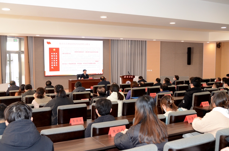 本網訊 12月11日,市委副書記、市長劉運來校宣講黨的二十大精神,與師生一起交流探討學習黨的二十大精神的認識和體會。校黨委書記李東主持報告會,黨委副書記、院長馮濱魯,黨委委員王旭升、王建新、王成端、李英德、李連成、單振濤,市直有關部門負責同志出席,師生代表現場聆聽報告。