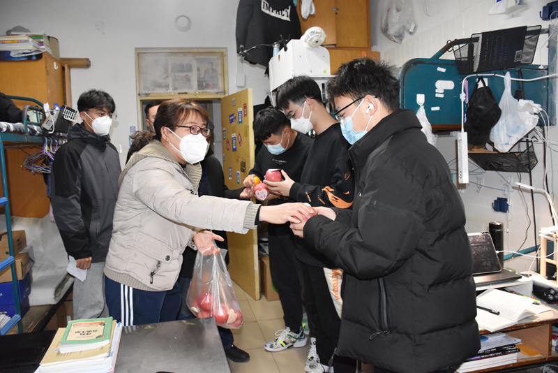 該院黨總支書記張曉靜仔細了解同學們學習備考和日常生活情況,關心詢問現階段遇到的突出問題,鼓勵大家在這關鍵時刻要穩住心態,不急不躁,全線壓上,堅定必勝信念。同時,她要求同學們務必做好個人防護,遵守學校規定,安全順利地邁向考場。她表示,學院將盡全力為同學們提供服務保障,老師們一直和大家在一起。
