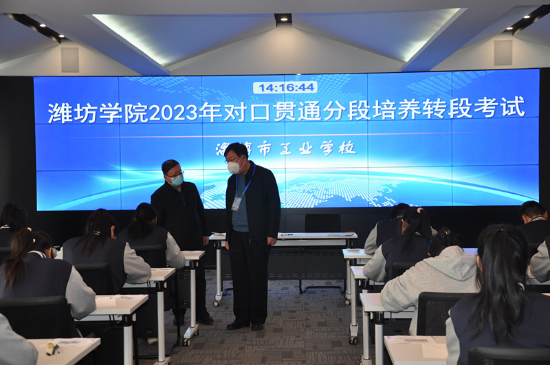 本網訊 2月18日,學校黨委委員、副校長王成端帶領教務處負責同志前往山東省濰坊商業學校、淄博市工業學校考點,現場查看我校相關專業2023年對口貫通分段培養轉段測試進行情況,并對相關工作進行指導。各考點嚴格按照省教育廳及學校工作要求,統一思想認識,分類精準施策,嚴格抓好考務組織,牢牢守住安全保密底線,落實好人防和技防各項管理措施,既保障了考生“應考盡考”,又確保了考試“公平公正”。測試現場紀律良好,考生精神飽滿,測試順利完成。