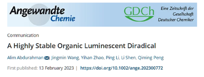 本網訊 近日,我校化學化工與環境工程學院申立博士與吉林大學電子科學與工程學院阿力木副教授、南京工業大學彭其明教授合作在《Angewandte Chemie》期刊上發表了題為“A Highly Stable Organic Luminescent Diradical”的文章(DOI:10.1002/anie.202300772)。
