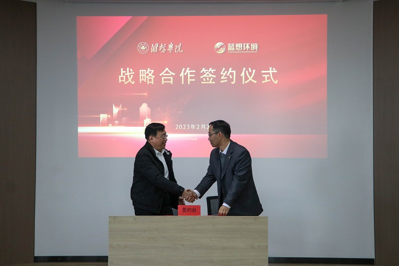 雙方圍繞科技成果轉化、人才培養與共享、專業共建、學生就業實習、管理咨詢服務等進行了深入溝通。會上,學校與山東藍想環境科技股份有限公司簽署了校企戰略合作協議。
