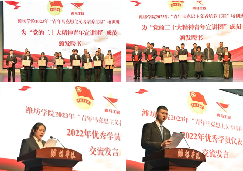 開班儀式上,團委有關負責同志宣讀了“黨的二十大精神”青年宣講團成員名單,與會領導為青年宣講團成員頒發了聘書,并為上一期優秀學員代表頒發了結業證書,優秀學員代表作了交流發言。
