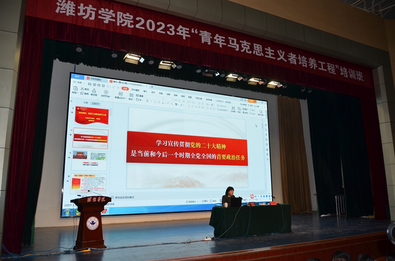 本網訊 3月16日,學校舉行2023年“青年馬克思主義者培養工程”培訓班開班儀式暨首場報告會,黨委副書記徐梅出席并講話。黨委委員、副校長王成端,黨委委員、宣傳部部長單振濤,馬克思主義學院主要負責同志在主席臺就座,團委負責同志主持。