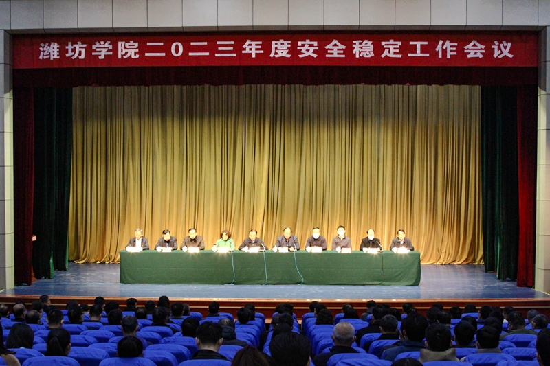 本網訊 3月17日,學校召開年度安全穩定工作會議,傳達貫徹上級部署要求,總結2022年安全穩定工作,部署2023年重點任務。黨委書記李東發表講話,黨委副書記徐梅傳達上級安全穩定有關會議文件精神,黨委委員、副校長李英德作校園安全穩定工作報告,黨委副書記、校長馮濱魯主持會議,黨委領導班子成員朱猷武、王旭升、王建新、王成端、李連成、單振濤出席會議。