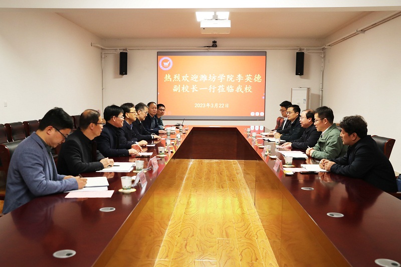 本網訊  3月22日,學校黨委委員、副校長李英德帶領科研處、學科建設與研究生教育處負責同志一行5人,赴濰坊科技學院考察交流。濰坊科技學院校長魏華中、黨委書記趙光強、副校長張友祥及相關部門負責人參加活動。