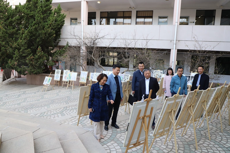 在美術學院座談結束后,徐梅一行還考察走訪了美術學院最美“藝”生成長驛站和一樓露天大廳裝飾繪畫課程作業展。
