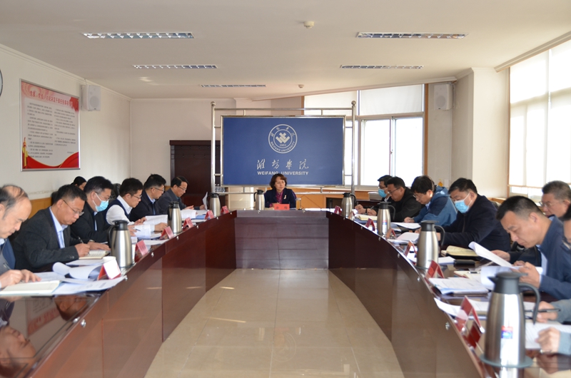 本網訊 為深入貫徹落實習近平總書記關于教育的重要論述,全面推進學校全環境立德樹人工作,3月30日,學校召開落實《濰坊學院“七四五”全環境育人工程實施方案》工作推進會。黨委副書記徐梅主持會議并講話。黨委委員、宣傳部部長單振濤及相關部門負責同志參加會議。