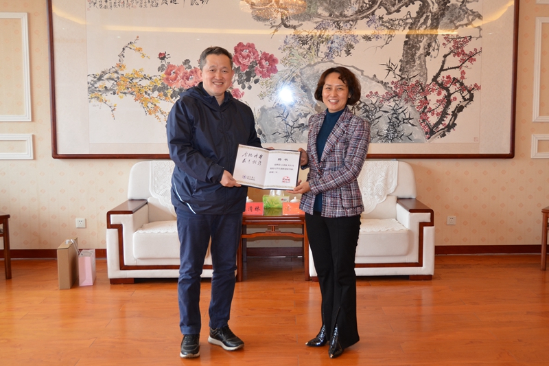 活動前,徐梅會見了王清林一行,對王清林回到母校表示歡迎和感謝,她介紹了學校畢業生就業創業的基本情況,并為王清林頒發了濰坊學院大學生創新創業導師聘書,希望在后續加強聯系、加強合作,為學校事業高質量發展凝聚更多校友智慧和力量。