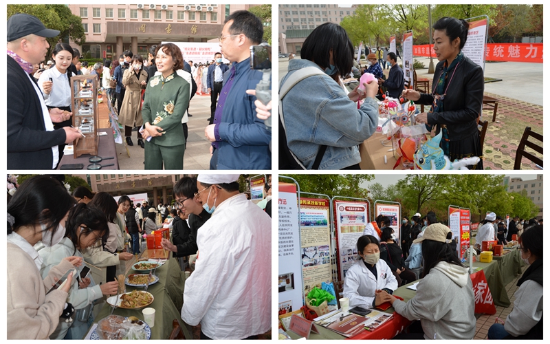 儀式結束后,風箏、核雕、嵌銀、刺繡、老貓花燈、葫蘆烙畫、恒盛齋點心、富郭莊芥末雞等20余個非遺項目參與互動展演;濰坊中醫藥非遺傳承中心的傳統醫藥類傳承人進行現場義診;螳螂拳、舞獅、漢服走秀等節目進行了現場表演;部分非遺文創企業及文創產品進行了宣傳推介;奎文區人社局、奎文團區委向師生現場介紹了奎文青年人才計劃、奎文就業政策等。與會領導和嘉賓還參觀了我校非遺研學基地。