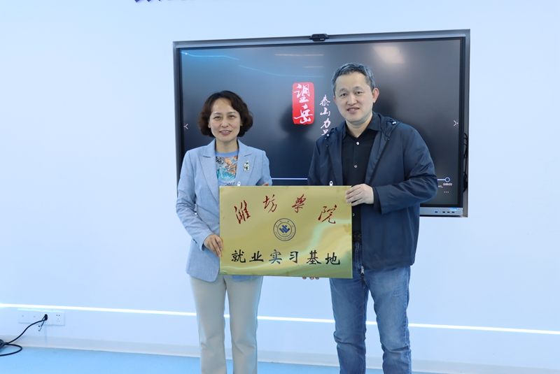 雙方進行了座談交流,徐梅介紹了學校的人才培養和畢業生就業情況。她表示,學校高度重視就業工作,王清林作為濰坊學院杰出的校友代表,取得了優秀的成績,為在校青年學生樹立了榜樣。雙方在家庭教育學科專業建設、職業能力培養提升、知識版權保護、創新團隊建設和校企深度融合優勢互補等方面進行了全方位探討交流,期待未來深度合作。會上還進行了濰坊學院就業實習基地授牌儀式。