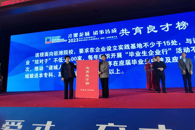 學校黨委成員、副校長馬茜華出席大會,并作為駐濰高校代表,為諸城市人才人力重點項目“揭榜掛帥”——共育良才榜揭榜。同時,馬茜華代表濰坊學院與諸城市政府簽訂共育良才雙方合作協議。今后,諸城市人民政府將和濰坊學院開展多渠道、多層次、多形式的交流與合作,搭建更多人才交流與產學研協同發展平臺,在前期良好合作基礎上,進一步深化合作發展,校地共育良才。