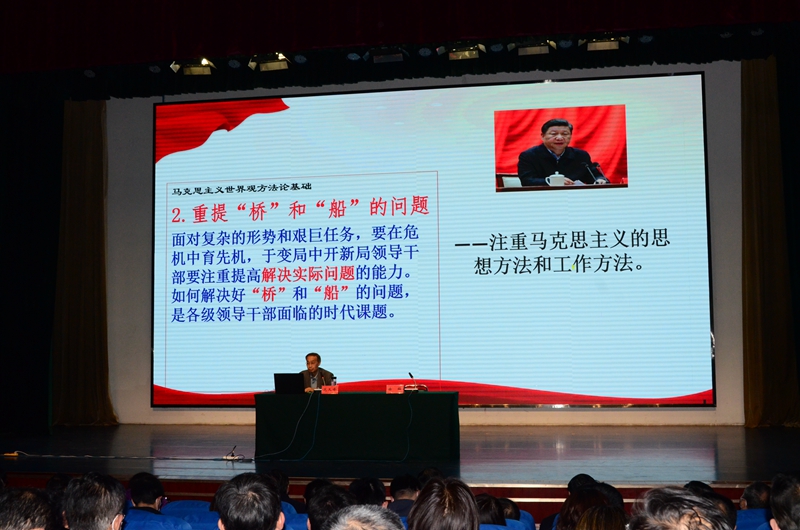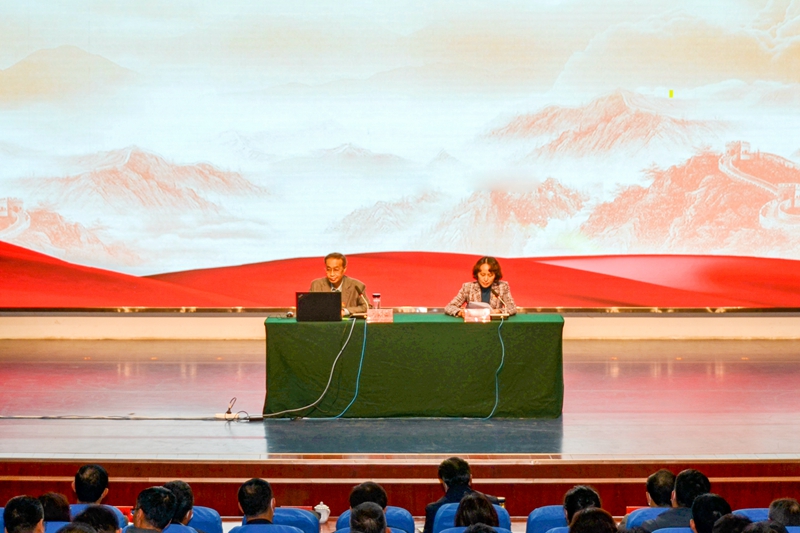 本網訊 為推動學校學習貫徹習近平新時代中國特色社會主義思想主題教育走深走實,4月25日,學校邀請市委黨校范天峰副教授作專題輔導報告。黨委副書記徐梅主持報告會。學校黨委書記李東,黨委委員王旭升、王建新、王成端、李英德、李連成、單振濤,全體處級干部,各黨支部書記參加報告會。