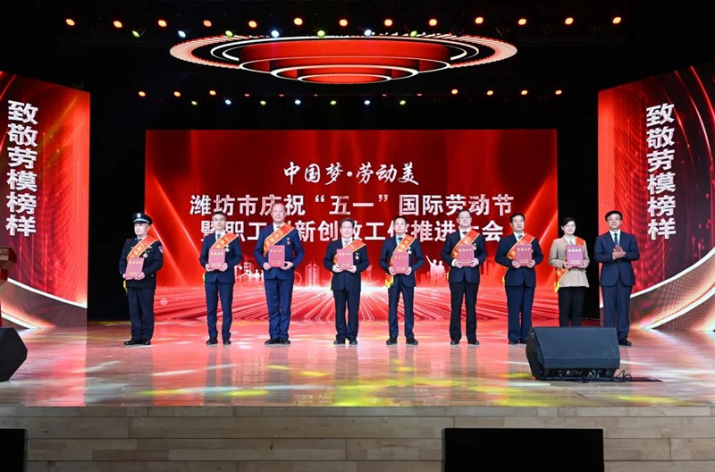 4月27日下午,濰坊市召開表彰大會,市委書記劉運為在全國及省、市獲獎先進單位、集體和個人代表頒獎。李永勝上臺領獎,并作為獲獎代表發言。