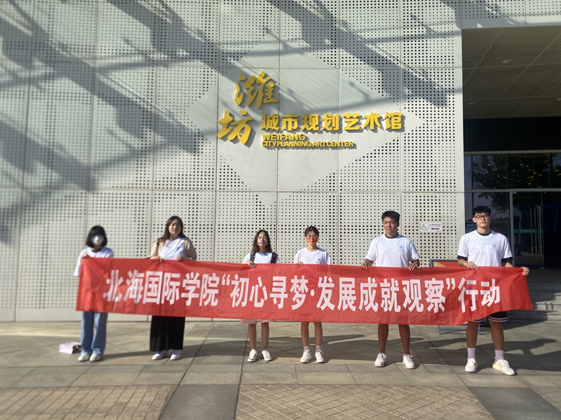 本網訊 為更好展現和宣揚濰坊城市形象,彰顯城市的發展魅力與活力,進一步引領廣大青年學子感知濰坊、融入濰坊,傳播濰坊聲音、講好濰坊故事,帶動更多青年學子在鳶都大地上施展才華、成就事業,8月18日,北海國際學院發展成就觀察團的隊員來到濰坊市城市規劃藝術館、濰坊人民廣場與濰坊風箏廣場開展暑期“三下鄉”社會實踐“初心尋夢·發展成就觀察”活動。