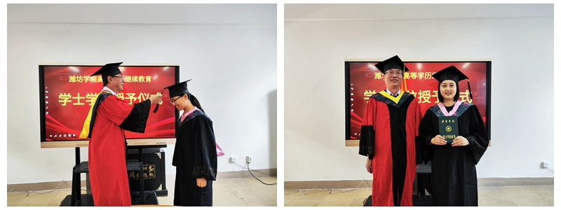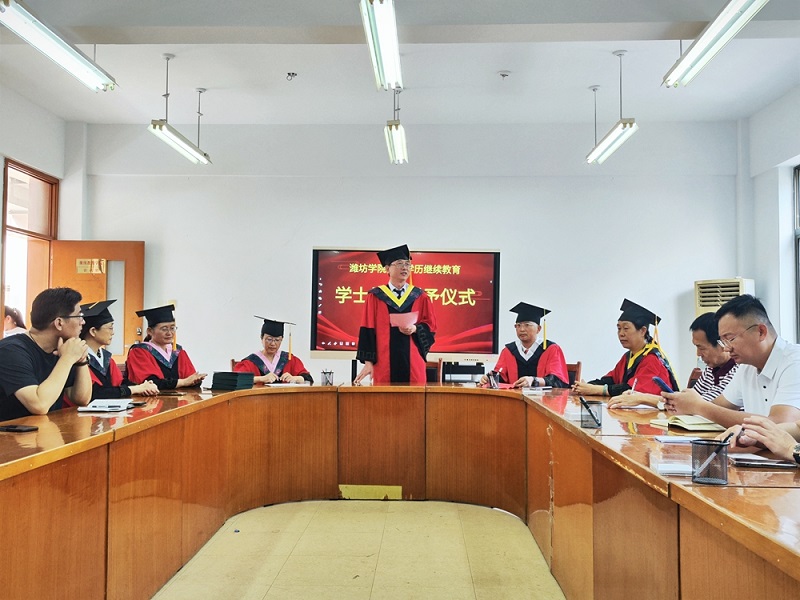 學位評定委員會委員、繼續教育學院副院長金永輝宣讀了《濰坊學院關于授予周軍濤等563名2023屆成人高等教育本科畢業生學士學位的決定》。