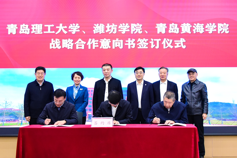徐梅表示,青島理工大學辦學歷史悠久,人文底蘊深厚,是國家首批地方高校“111計劃”建設單位、全國首批深化創新創業教育改革示范高校、山東省首批高水平大學“強特色”建設高校。青島黃海學院師資力量雄厚,學科門類齊全,是山東省應用型本科高校建設支持單位、山東省智慧教育示范校創建單位。她指出,本次戰略合作意向書的簽訂是三校推進同頻共振、合作共贏的務實之舉,也必將在今后的合作中形成更強大的合力。下一步,三方將在學術交流、教師互派交流和學生跨校學習實踐等方面加深合作,力爭打造一批具有示范效應的合作項目,共同為山東高等教育高質量發展增光添彩、賦能加力,為教育強國強省建設作出新的更大貢獻。
