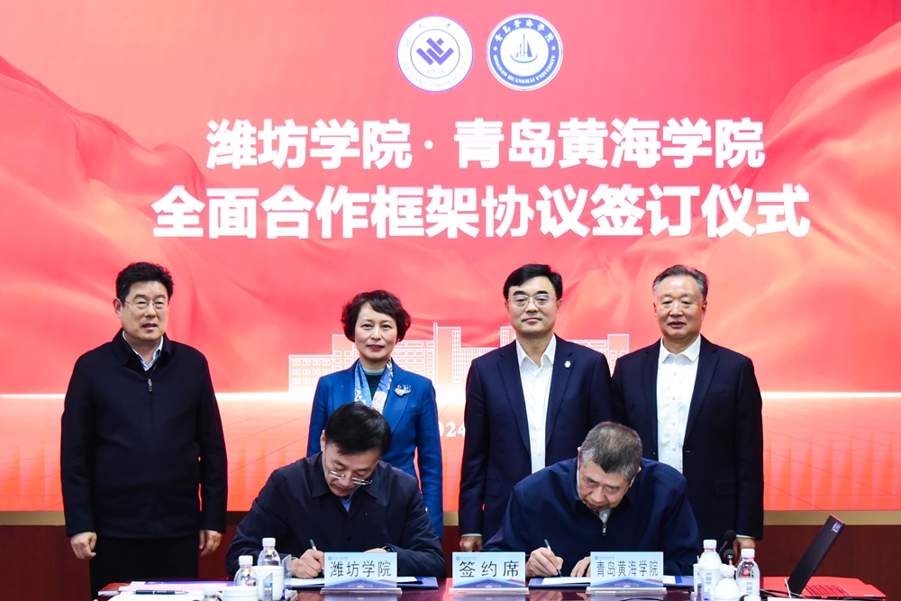 當天下午,學校與青島黃海學院全面合作框架協議簽約儀式舉行。來逢波和李清山代表雙方簽署協議,兩校對口部門進行了座談交流。根據協議約定,兩校將在黨建工作、師資隊伍建設、人才培養、學科專業、教學資源、科學研究、國際交流等方面深化合作交流,打造校際合作的典范和標桿。