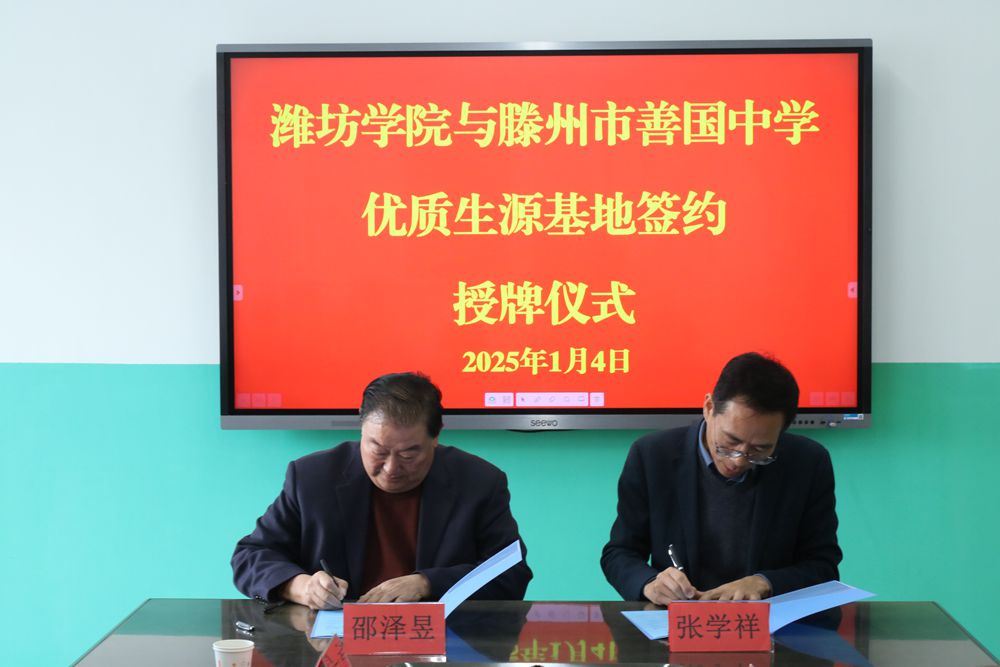 期間,雙方代表簽署了合作協議并進行了濰坊學院優質生源基地授牌。
