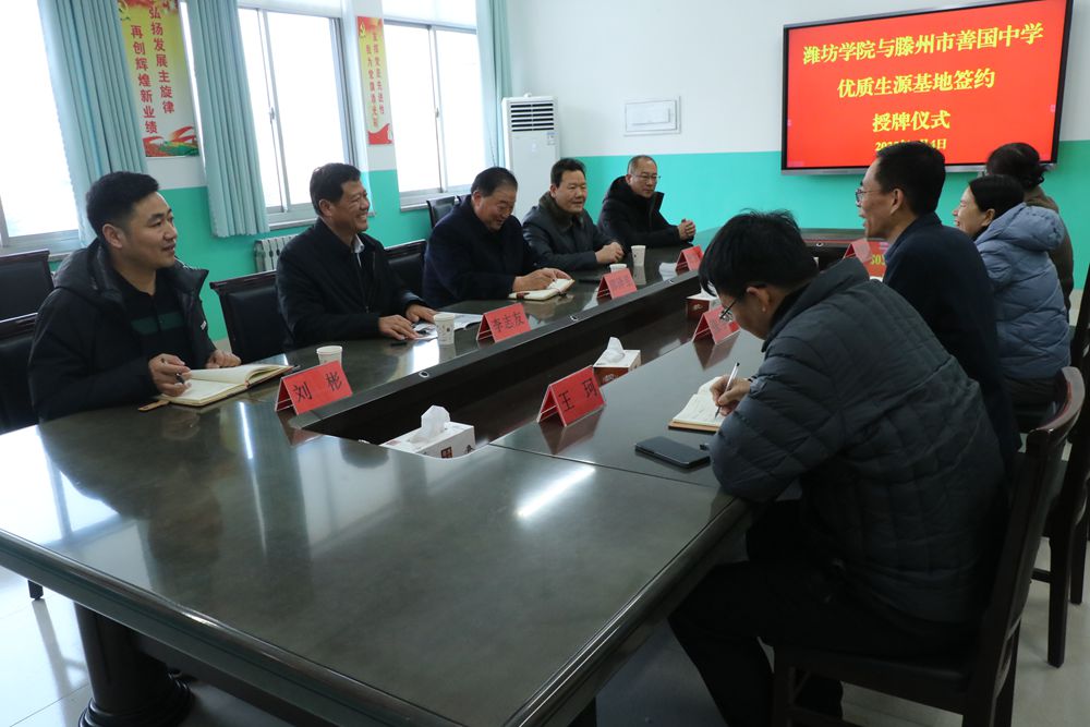 邵澤昱介紹了善國中學的辦學特色,表示善國中學將不斷拓展辦學空間,努力提升教學質量,為濰坊學院輸送優質生源。