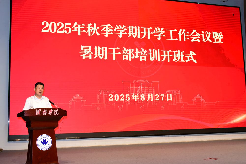 本網訊 8月27日至29日,學校舉辦2025年暑期干部履職能力提升培訓班。開班式上,黨委副書記、校長來逢波對下半年工作進行安排部署,黨委副書記王守全主持會議并作干部培訓動員講話。學校全體黨委班子成員出席培訓班。
