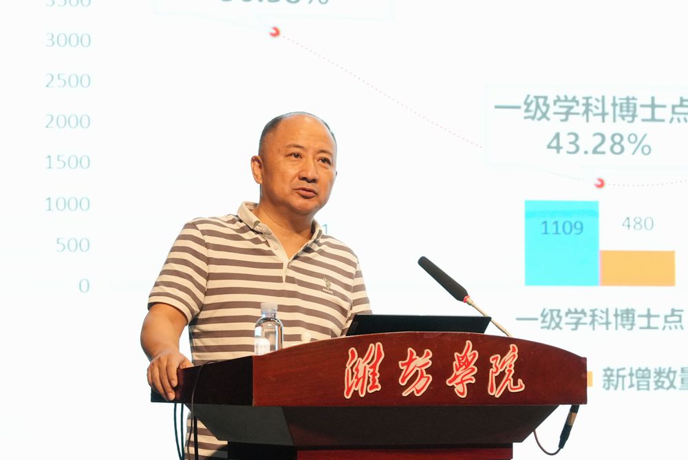 來逢波以《追風趕月莫停留 平蕪盡處是春山》為題作報告。報告從8個維度深入剖析當前高等教育面臨的新形勢新要求,對下半年工作進行了展望與部署。在總結暑期工作進展情況時,來逢波充分肯定了學生公寓更新改造、新校區建設、學科建設、常規工作等推進情況,并針對學科專業建設、人才發展成效、教育教學質量、科技創新與社會服務、國際交流與合作、辦學資源等關鍵指標進度進行同比分析。
