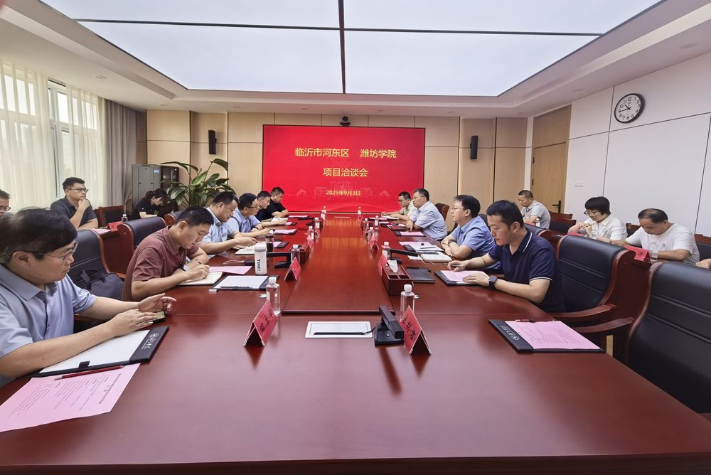 本網訊 9月3日,臨沂市河東區科學技術局、區委人才發展服務中心一行8人來我校進行項目合作對接。學校黨委書記來逢波,黨委委員、副校長李英德會見客人。