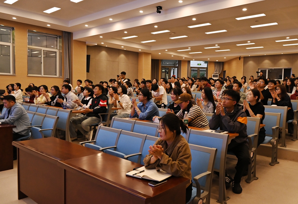 第十四屆“挑戰杯”國賽金獎項目“濾航先鋒——船舶發動機燃油維持系統(EMFS)”負責人武文琦同學帶來現場路演,展示了項目在船舶發動機燃油過濾領域的創新突破與應用價值,分享了備賽期間的時間規劃、團隊協作技巧與答辯應對策略。