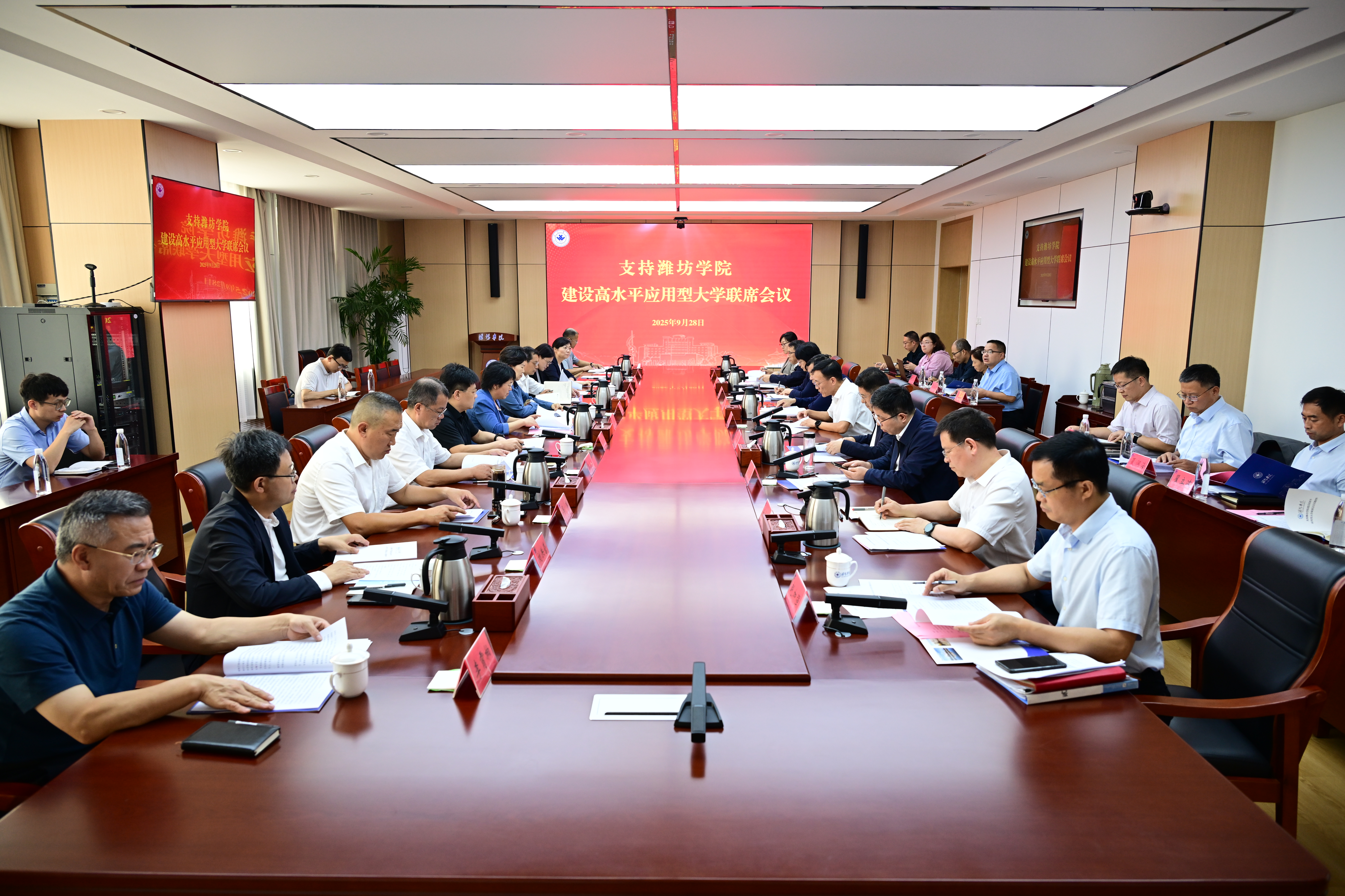 本網訊 9月28日,濰坊市委、市政府支持濰坊學院建設高水平應用型大學第二次聯席會議在學校召開。濰坊市副市長陳端梅出席會議并講話,學校黨委書記來逢波主持會議。濰坊市發改委、教育局、工信局、公安局、財政局、自然資源和規劃局、住建局、城管局、市場監管局、寒亭區政府分管負責同志,學校黨委班子成員參加會議。