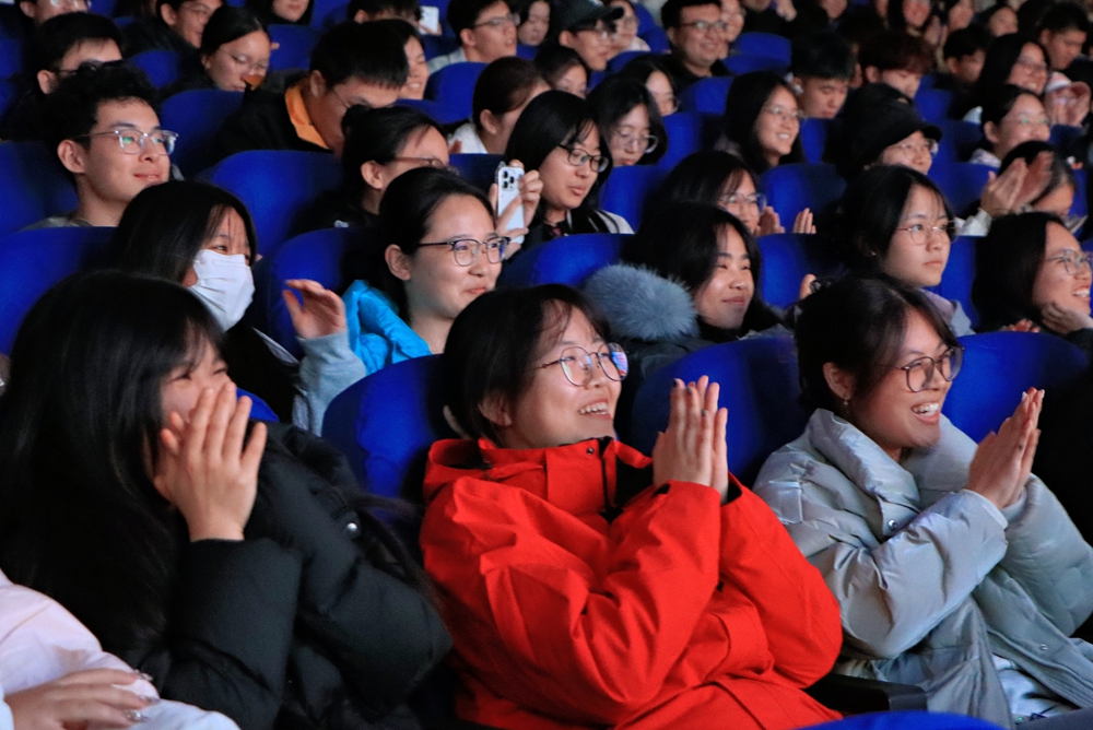 活動匯聚京劇、呂劇、相聲、快板等多種藝術形式,為師生呈現了一場融合傳統與青春的文化盛宴。京劇《挑滑車》以精湛的武生表演拉開序幕,呂劇《姊妹易嫁》《借年》《小姑賢》輪番上演,真摯唱腔和生動情節展現了山東地方戲的質樸魅力。相聲《雜學唱》妙趣橫生,快板《家風》節奏明快,在朗朗竹板聲中傳遞了優良家風家訓。壓軸劇目京劇《霸王別姬》以細膩唱腔和深情演繹贏得全場喝彩。藝術家們以精湛的技藝、圓潤的唱腔和富有感染力的舞臺表現,生動展現了傳統戲曲的深厚底蘊與藝術價值。