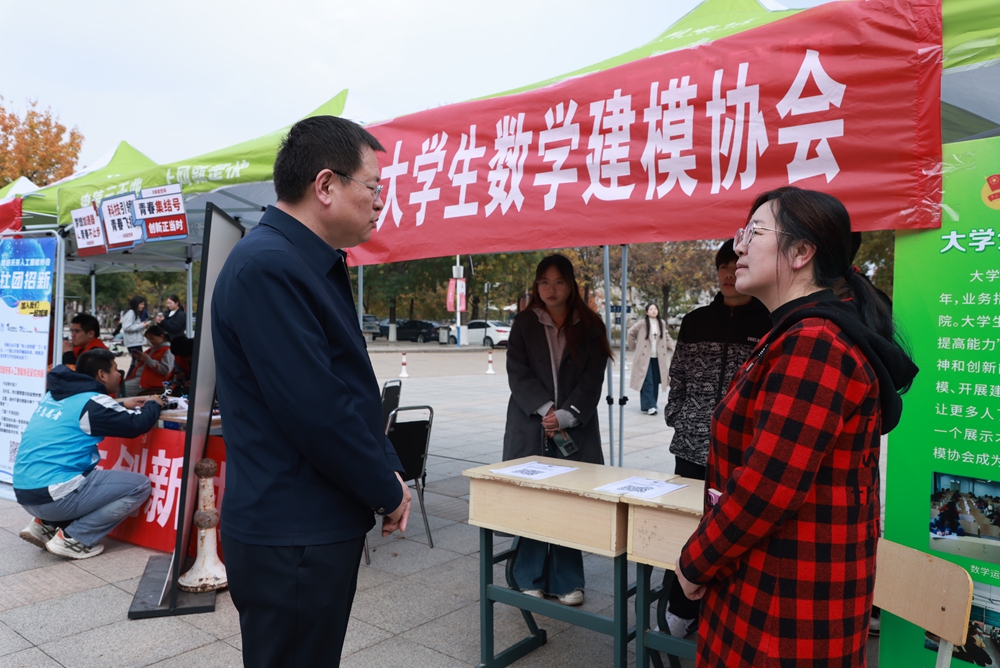 活動現場,任立春與同學們深入交流,詢問社團開展的日常活動和納新情況,了解新成立學生社團與年度優秀學生社團情況。他希望同學們,要心系社團、熱愛社團、深耕社團,以多元創新激活社團活力,將學生社團打造成第二課堂的育人高地與成長沃土;要在豐富多彩、充滿朝氣的校園生活中有所得、有收獲、有成長,于實踐中錘煉本領,于協作中凝聚力量,讓青春在社團實踐中綻放別樣光彩。
