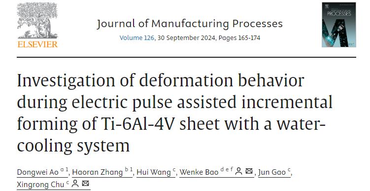 論文“Investigation of deformation behavior during electric pulse assisted incremental forming of Ti-6Al-4V sheet with a water-cooling system”研究通過引入水冷系統,避免制件表面氧化和晶粒粗化,實現零件表面光潔度的顯著提升的同時,使得成形高度超過15 mm的復雜零件具有更高的幾何精度和成形性,為高質量Ti-6Al-4V零件的制造提供了有效策略。