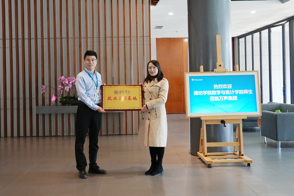雙方還舉行了“就業實習基地”授牌儀式。會后,康曉俊一行還實地參觀了萬聲集團的文化展廳,詳細了解萬聲集團的發展歷程、業務范圍、企業文化和榮譽成就。