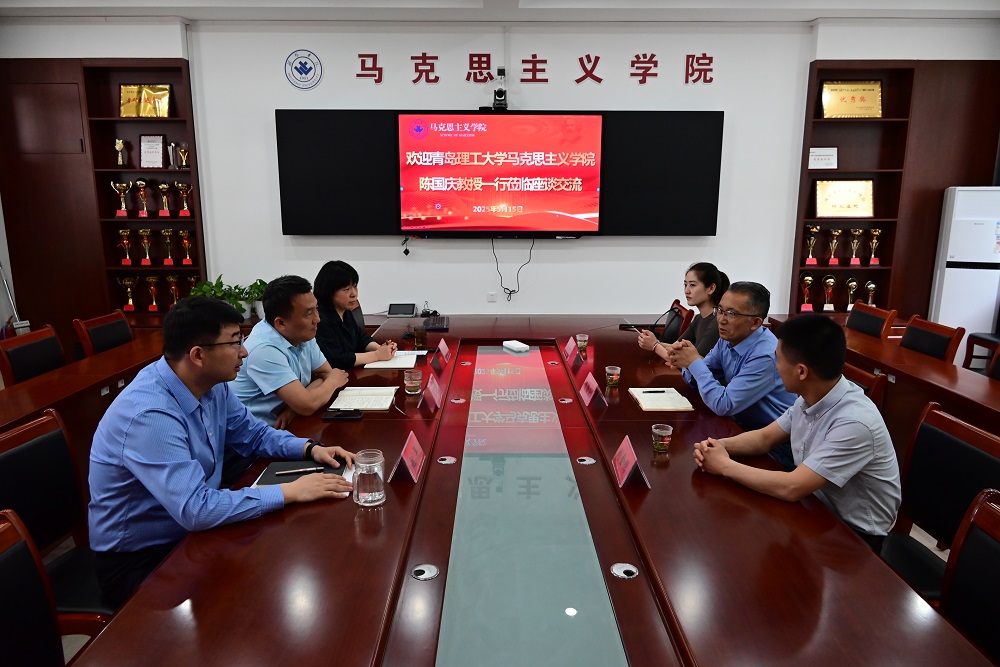 本網訊 5月15日,青島理工大學馬克思主義學院陳國慶教授、劉金德副教授一行來校交流。學院黨委書記王鋒,副院長高海杰、趙軍參加相關活動。