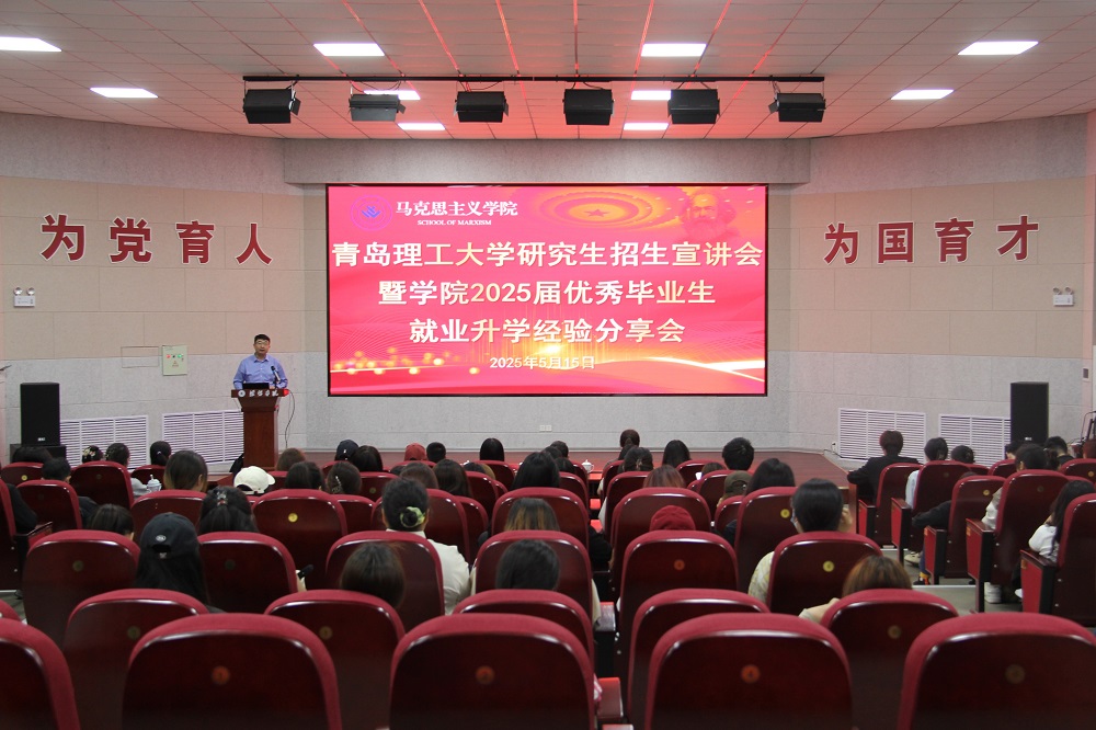 座談交流前,青島理工大學馬克思主義學院作研招宣講,學校文史學院、外國語學院、馬克思主義學院、法學院學生參加宣講會。