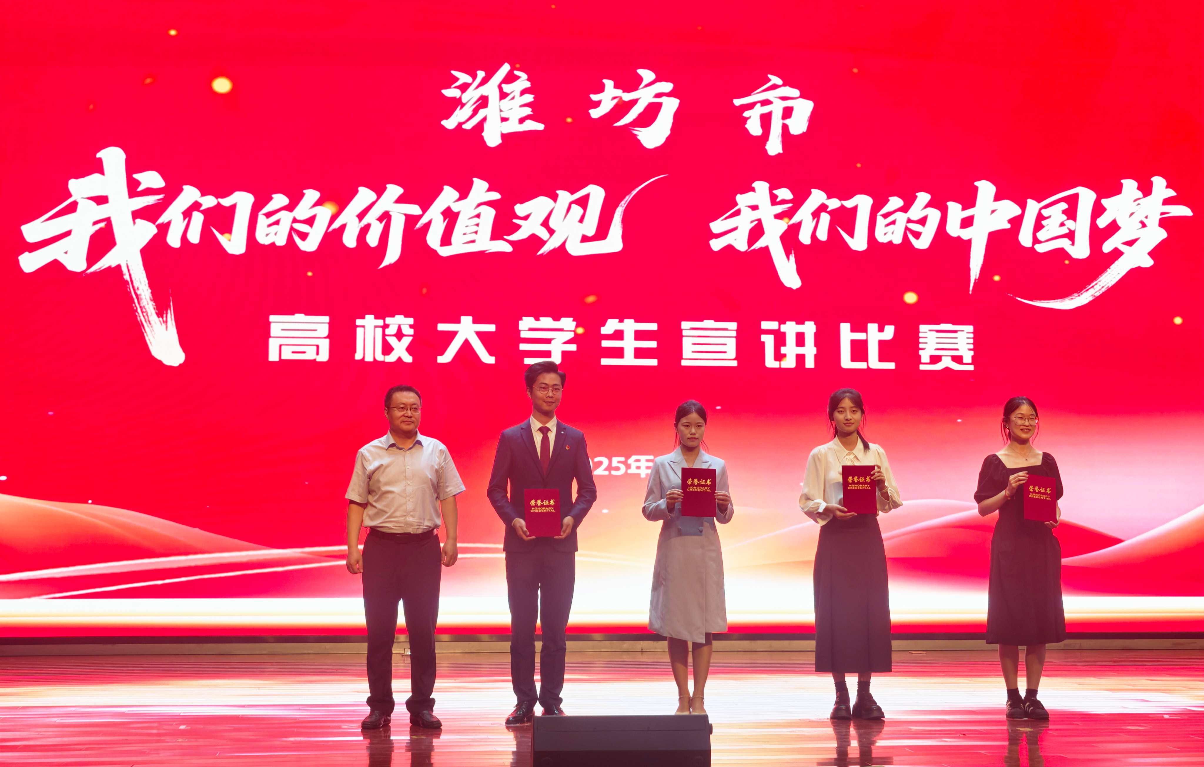 本網訊 6月27日,由濰坊市委宣傳部、市委教育工委主辦的“我們的價值觀 我們的中國夢”大學生宣講比賽在山東經貿職業學院舉行。本次比賽匯聚了全市15所高校50余名優秀選手同臺競技,我校美術學院(陳介祺金石書法學院)學生張玥獲故事類宣講一等獎。