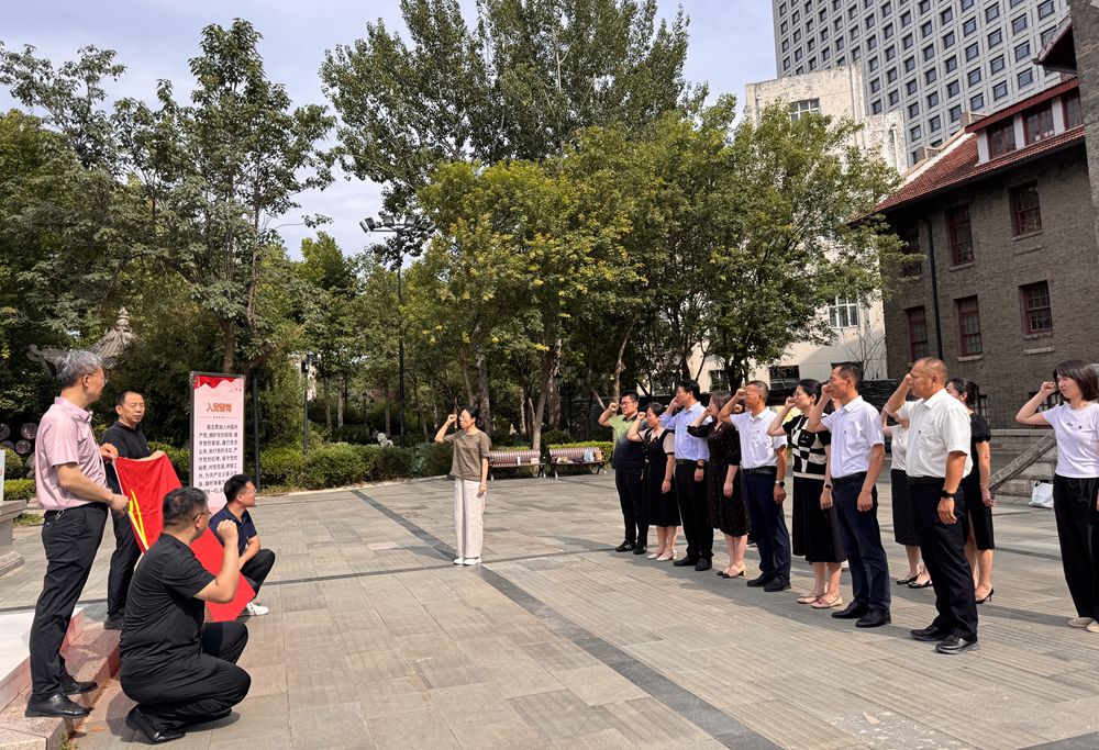 期間,全體與會同志集體參觀樂道院濰縣集中營博物館,并在宣誓欄前集體整齊列隊,面向黨旗,舉起右拳,莊嚴進行重溫入黨誓詞儀式。