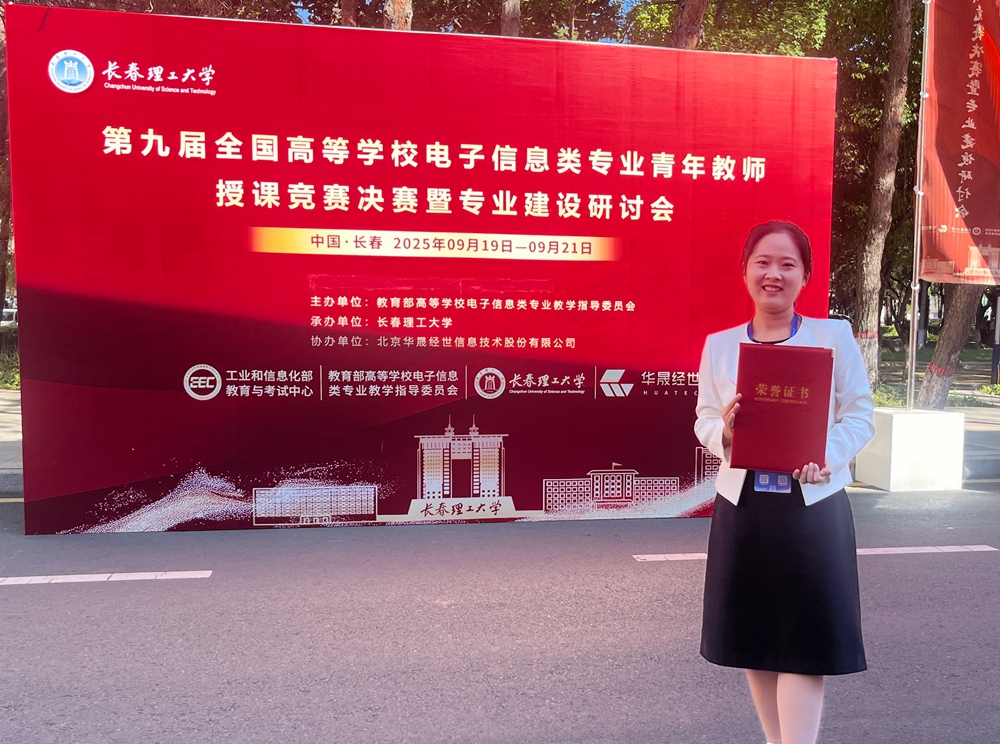 本網訊 9月19日至21日,第九屆全國高等學校電子信息類專業青年教師授課競賽決賽在長春理工大學舉行。計算機工程學院孫靜老師榮獲全國三等獎。