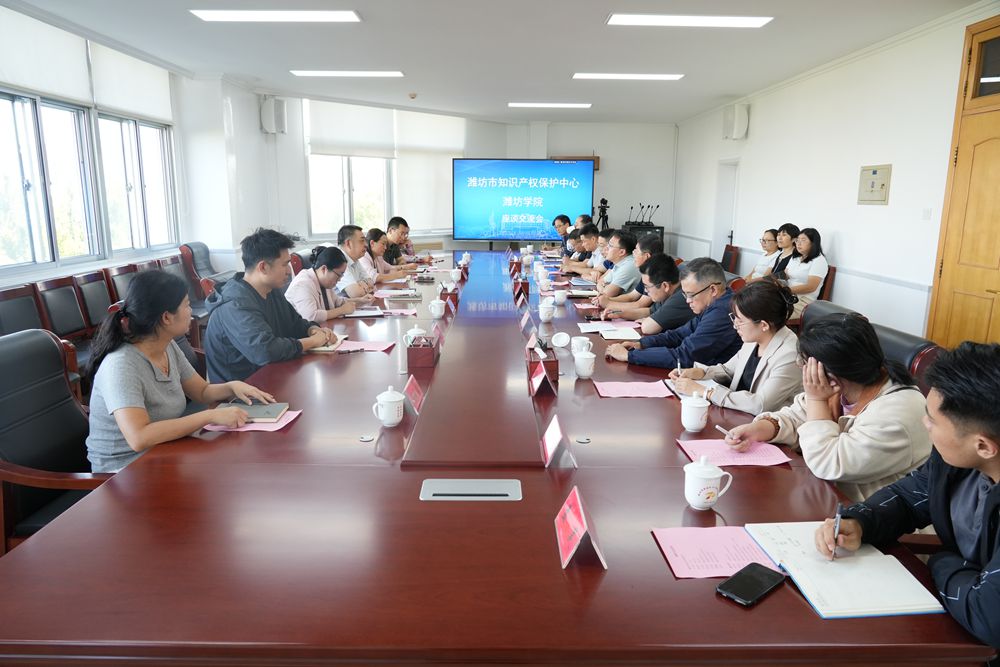王成端向濰坊市知識產權保護中心對學校的支持和幫助表示感謝。他簡要介紹了學校基本情況,以及學校近年來在提升專利申請質量、促進科研創新平臺建設、科技成果轉化和提高科技創新服務能力等方面取得的成效,希望通過此次交流,進一步深化雙方合作,實現共贏發展。