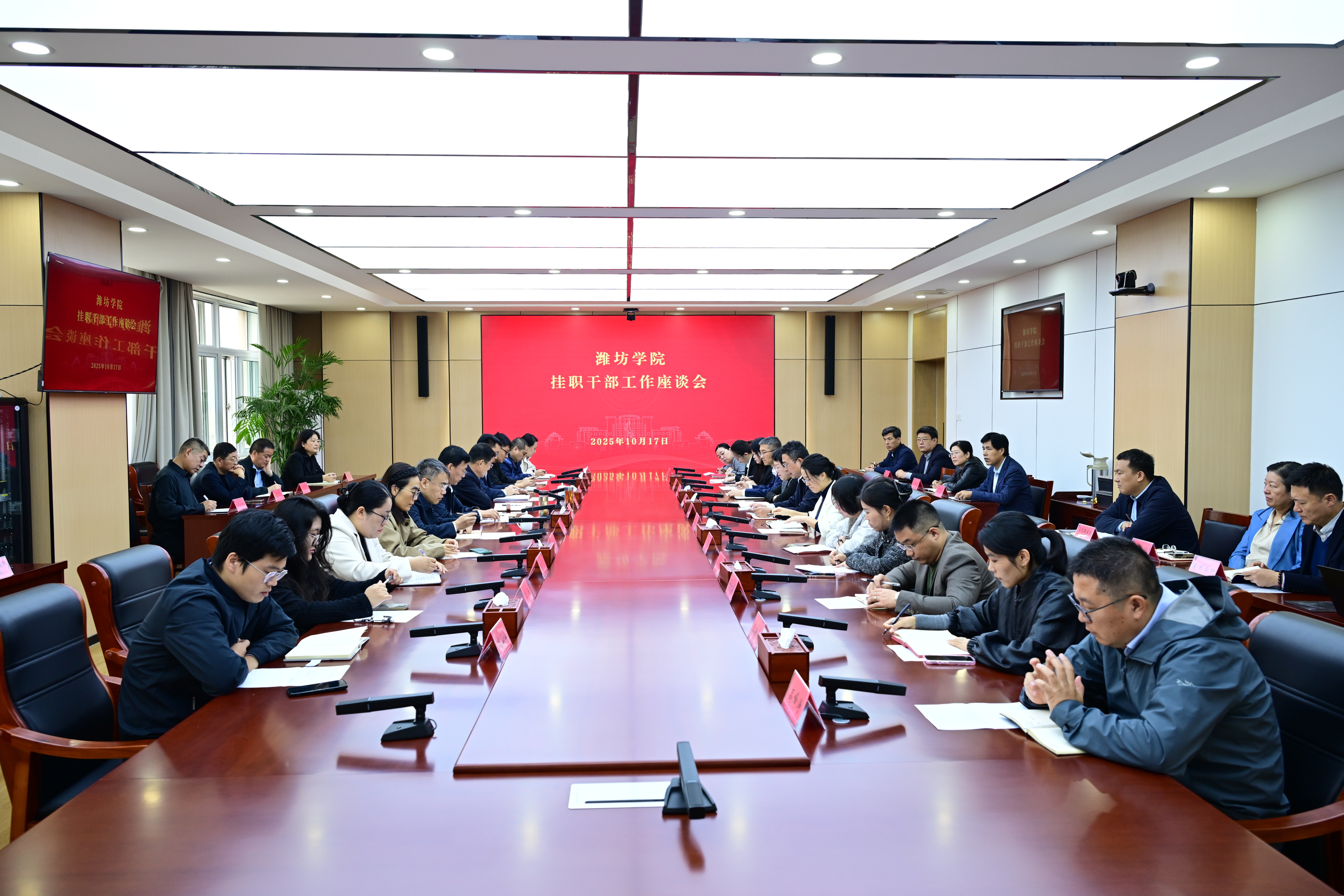本網訊 10月17日,學校召開掛職干部工作座談會。黨委書記來逢波出席會議并講話,濰坊市委組織部副部長郝金亮到會指導,黨委副書記王守全主持會議,黨委委員、組織部部長趙加強出席會議。