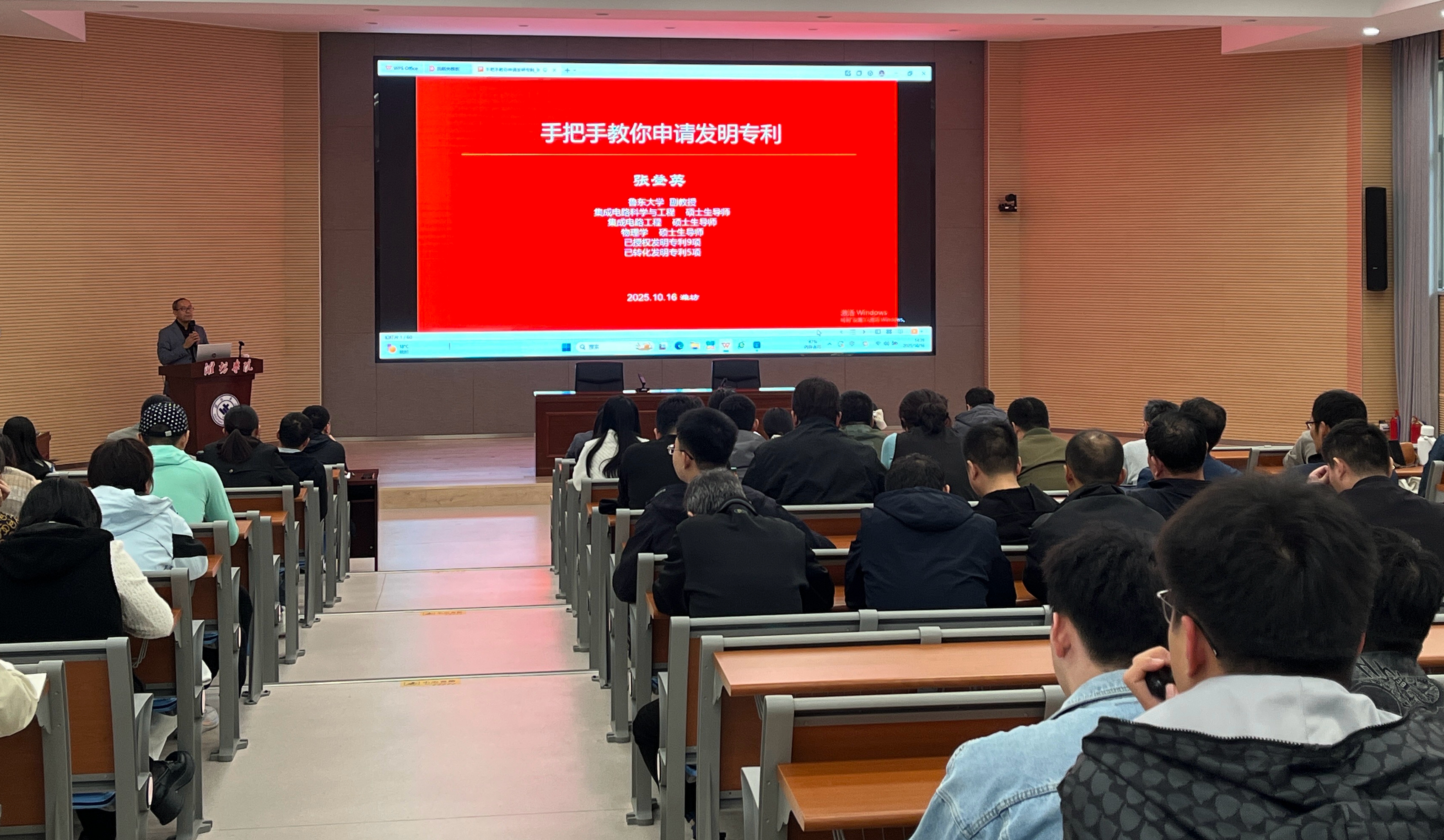 本網訊 10月16日,物理與電子信息學院舉辦“知識產權及科技成果轉化”學術報告會。本次報告會邀請魯東大學副教授張登英主講,學院全體教師參加。