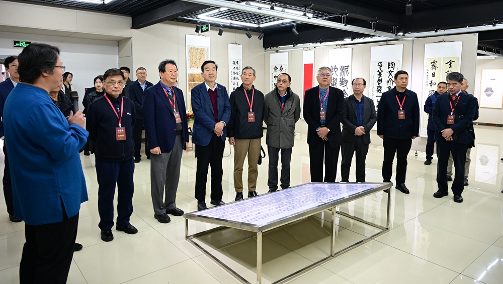 19日,中國書法家協會名譽主席蘇士澍,中國書法家協會理事、篆刻委員會副主任徐正濂,中國書法家協會理事陸明君,濰坊市書法家協會主席紀君等海內外書法篆刻領域專家學者50余人,來校參觀“簠齋薪傳·金石華章”特展。學校黨委委員、副校長李英德出席活動。