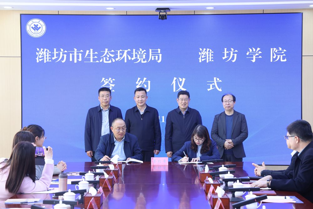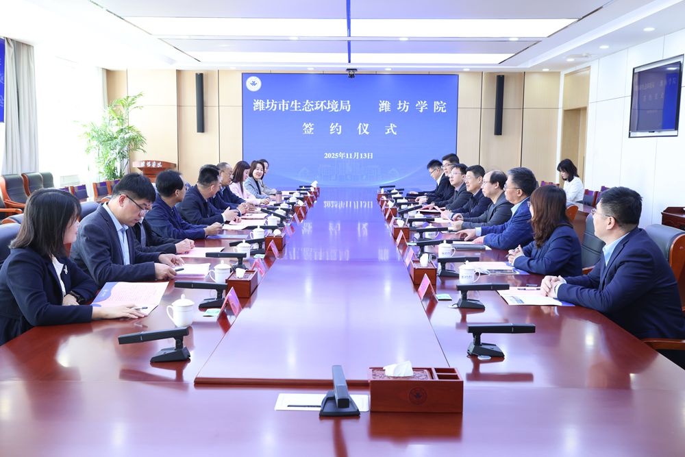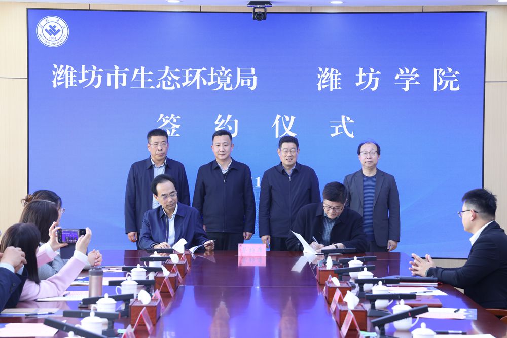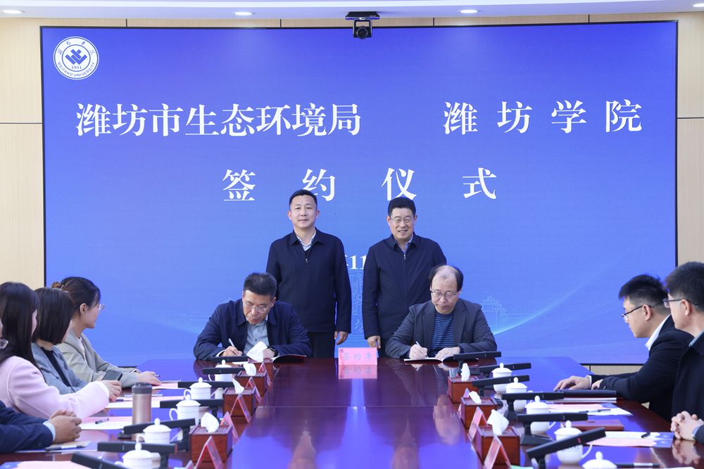 本網訊 11月13日,學校與濰坊市生態環境局合作簽約儀式在校舉行。學校黨委副書記王守全致辭,學校黨委委員、副校長李英德,濰坊市生態環境局黨組書記、局長鄒曉東,濰坊市生態環境局黨組副書記、副局長孟建明出席活動。