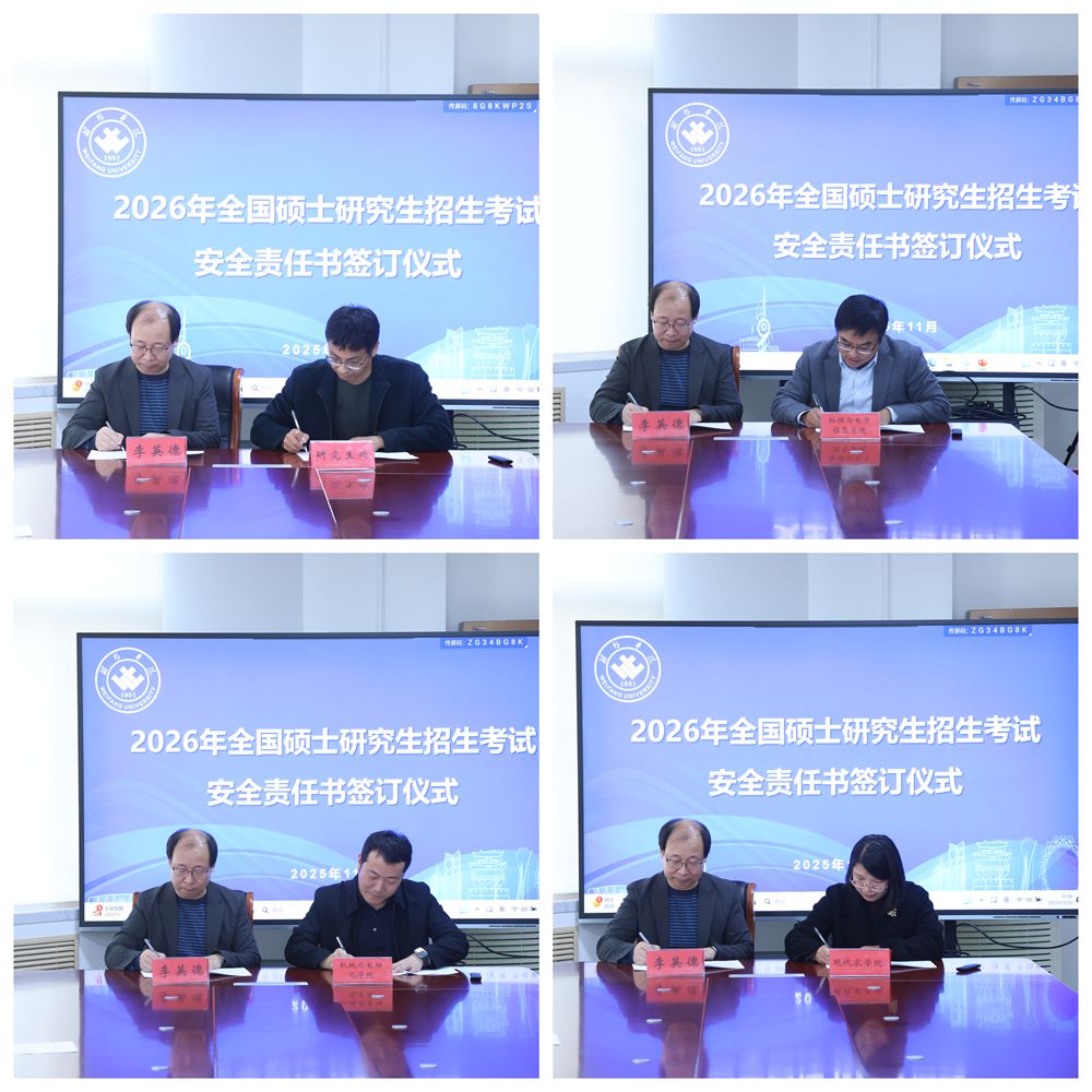 會后,李英德與研究生處、各研究生招生學院院長簽訂2026年碩士研究生招生考試安全責任書。