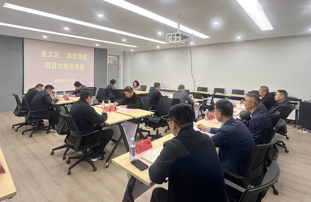 座談會上,雙方圍繞智能制造、物聯網應用、自動化控制等議題展開深度對接,并就科研成果轉化、共建研發平臺、聯合技術攻關、人才定向培養等合作模式達成共識。雙方還就籌備共建“奎文—濰坊院聯合技術轉移中心”進行了深入探討,并參觀了學校科教產融合創新中心。
